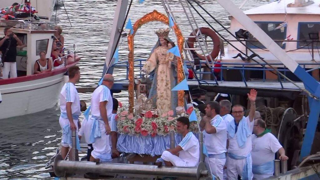 Il giorno 24 luglio la statua della Madonna viene condotta al porto e imbarcata su un peschereccio per la processione in mare, dove la Madonna viene condotta lungo la costa della città e accompagnata da altre imbarcazioni al seguito. Le imbarcazioni che prendono parte alla processione in mare sono tutte decorate e illuminate. La processione termina con spettacoli pirotecnici a mare assolutamente scenografici.